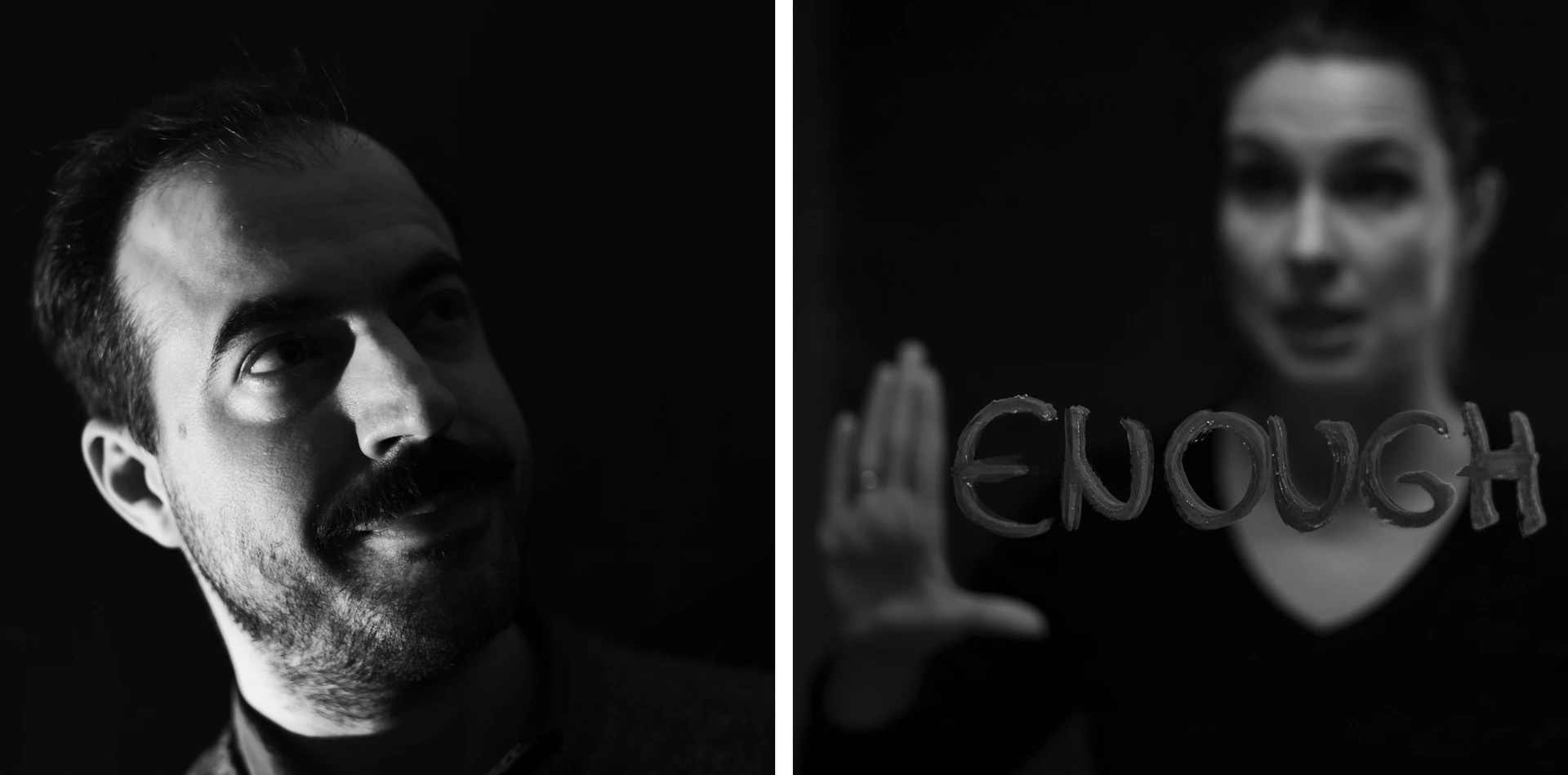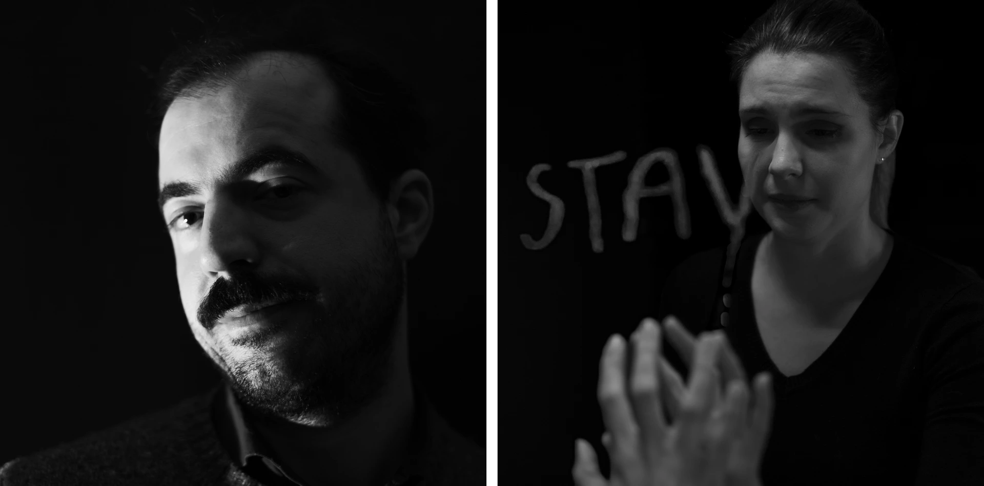 Due persone diverse, un uomo e una donna, riprese in momenti separati. Limitazioni, libertà e condizioni emotive differenti — interpretano la stessa parola.